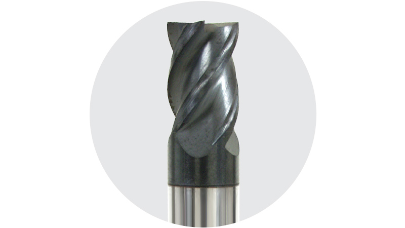 Solid carbide end mill for machining nickel alloys, titanium, and stainless steels. Z4 variable pitch cutting edge design interrupt chattering.
